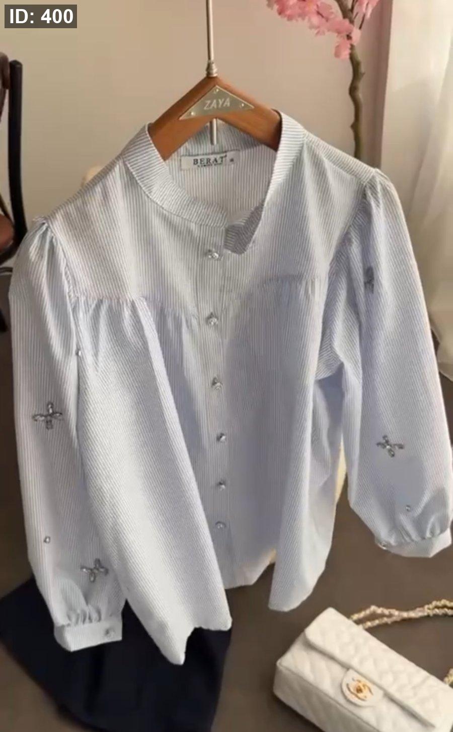 قميص مع ستراس مخطط